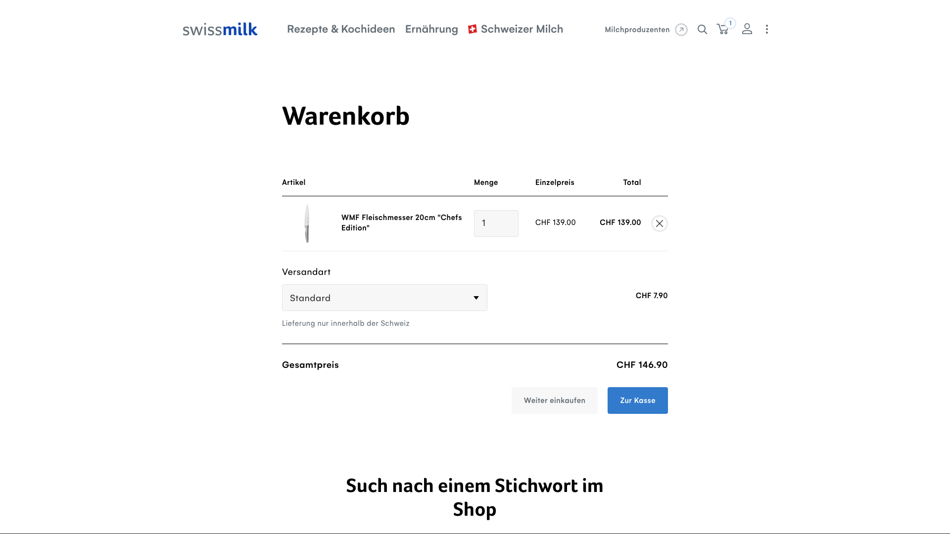 Swissmilk E-Shop — Innovative Technologie